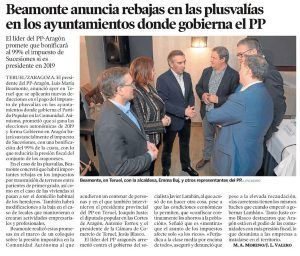 02-21-18_Beamonte anuncia rebajas en las plusvalías en ayuntamienos donde gobierna el PP Por Manuel|2018-02-22T08:33:40+00:00febrero 22nd, 2018|Sin comentarios Share This Story, Choose Your Platform! FacebookXRedditLinkedInTumblrPinterestVk Sobre el Autor: Manuel Deja tu comentario Cancelar la respuestaDebe iniciar sesión para escribir un comentario.