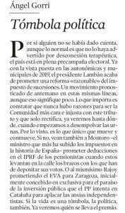 03-01-18_Tómbola política Por Manuel|2018-03-04T09:35:08+00:00marzo 4th, 2018|Sin comentarios Share This Story, Choose Your Platform! FacebookXRedditLinkedInTumblrPinterestVk Sobre el Autor: Manuel Deja tu comentario Cancelar la respuestaDebe iniciar sesión para escribir un comentario.